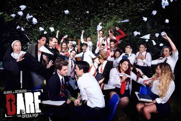 Peter (Mariano Magnífico) y Jason (Ezequiel Rojo) son dos adolescentes que intentan sobrellevar su amor clandestino en un rígido colegio católico. El primero desea vivir su romance con plenitud, mientras su compañero intenta ocultar sus sentimientos por miedo al “qué dirán” y a perder su status social.Con claras reminiscencias a “Rent” y “Despertar de primavera”, aunque “Bare, una ópera pop” preceda a estas obras icónicas del musical, entre hormonas y la poesía de “Romeo y Julieta” de William Shakespeare, la obra retrata el mundo de los jóvenes con sus vivencias al extremo y los sentimientos encontrados, propios de la edad.La historia de Jon Hartmere y Damon Intrabartolo tuvo más de 20 versiones en todo el mundo, y a Argentina llega correctamente adaptada por Marcelo Kotliar, después de haber sido vista en Nueva York por Pedro Velázquez, su actual director, quien se enamoró de la obra, consiguió los derechos y formó el equipo para montarla en nuestro país. Aunque respetando la historia original, las escenas fluyen entre las canciones y los textos, lo que da un sello particular.El elenco, encabezado por Mariano Magnífico, Ezequiel Rojo, Sol Giménez y Mica Romano, fue seleccionado entre 1000 postulantes a las audiciones abiertas a fines de 2015. Todos brillan en conjunto, con lindas coreografías y destacadas voces, también en sus momentos en solitario. Talentosos jóvenes con un futuro promisorio por delante. La entrega es total para una puesta, y un despliegue escénico interesante.Una obra directa, que trata esos temas complejos para la sociedad, como la homosexualidad, las drogas, el bullying, desde la mirada adolescente, allá por la década del 90.
